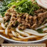Divide your perfectly cooked udon noodles into serving bowls. Ladle the steaming broth over them, then top each bowl generously with the sautéed beef and negi, narutomaki slices, thinly sliced green onions, and a sprinkle of mitsuba if you like. For anyone who loves a little heat, a dusting of shichimi togarashi spices things up brilliantly. Every bowl is a happy celebration of flavors and textures.