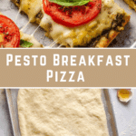 This Breakfast Pizza features a delightful thin-crust base topped with pesto-flavored scrambled eggs, fresh mozzarella, ripe tomato slices, and aromatic basil leaves. Perfectly baked to golden perfection, this quick and customizable morning meal is sure to become a family favorite.