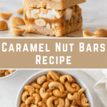 Caramel Nut Bars featuring a buttery shortbread crust layered with roasted salted peanuts and cashews, mini marshmallows, and a luscious caramel and cream drizzle. This easy-to-make dessert offers the perfect balance of sweet and salty flavors and a delightful chewy texture.