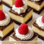 Delicious and creamy cheesecake bars with a graham cracker crust, baked to perfection and chilled for a smooth texture. This versatile dessert can be topped with chocolate ganache, caramel, fruit preserves, or fresh fruit, offering rich flavor and a satisfying treat for any occasion.