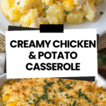 This Cheesy Chicken Potato Casserole is the ultimate easy comfort food! Made with creamy soup, shredded chicken, hash brown potatoes, and topped with buttery croutons, it’s a hearty and satisfying dinner the whole family will love.