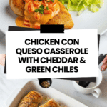 This Chicken con Queso is a deliciously cheesy and flavorful casserole topped with diced tomatoes, fire-roasted green chiles, and sharp cheddar cheese. Made with simple seasonings and baked to perfection, it’s an easy and satisfying meal perfect for any night of the week.