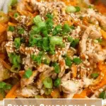 7. Serve: Plate the Chicken Lo Mein and garnish with chopped fresh scallions, sesame seeds, and the optional sriracha roasted vegetables. Enjoy immediately.