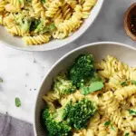 - Serve: Plate the pasta, garnish with a few fresh thyme leaves, and optionally top with sautéed broccoli for added texture and flavor. Drizzle a little olive oil over the top if you like an extra rich finish. Serve warm and enjoy!