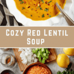 This red lentil soup is a flavorful, comforting, and easy-to-make vegan and gluten-free soup. With simple ingredients like red lentils, onions, cumin, and lemon juice, it offers a creamy texture and bright, earthy flavor perfect for a nourishing meal. It also freezes well for convenient leftovers.