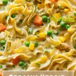 Creamy Veggies and Noodles is a comforting vegetarian dinner featuring tender egg noodles simmered with a medley of vegetables in a flavorful broth, enriched with evaporated milk for creamy texture. This easy stovetop recipe delivers a hearty and delicious meal perfect for weeknight dinners.