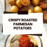 These Crispy Roasted Parmesan Potatoes are a deliciously golden-brown side dish featuring baby potatoes roasted with a flavorful parmesan crust. Crispy on the outside and tender inside, they are seasoned with garlic powder, oregano, paprika, and black pepper, then baked to perfection. Served with a creamy sour cream and green onion dip, they make a perfect accompaniment to any meal or a tasty snack.