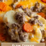 - Layer the Ingredients in the Slow Cooker: Place half of the sliced potatoes evenly on the bottom of the slow cooker. Top with half of the cooked ground beef and onion mixture, then pour half of the soup mixture over it. Add half the sliced carrots and sprinkle with 1 cup of shredded cheddar cheese. Repeat the layering with the remaining potatoes, beef, soup mix, carrots, and cheese.