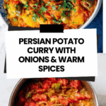 Dopiazeh Aloo is a comforting Persian potato curry bursting with aromatic spices, caramelized onions, and fresh herbs. Originating from Shiraz in Southern Iran, this dish features tender cubes of Yukon gold potatoes simmered with turmeric, cumin, coriander, and tomatoes, creating a vibrant and flavorful side dish that pairs beautifully with a variety of mains such as chicken, shrimp, or roast cauliflower.