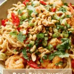 This quick and flavorful Pad Thai recipe features tender rice noodles, your choice of shrimp, chicken, or tofu, scrambled eggs, fresh vegetables, and crunchy peanuts all tossed in a tangy, homemade sauce. Ready in just 30 minutes, it’s an authentic Thai dish that’s perfect for a satisfying weeknight dinner.