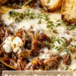 9. Serve: Serve the French onion pot roast warm, perfect over mashed potatoes or your favorite side dishes, accompanied by sliced toasted baguette for soaking up the flavorful sauce.