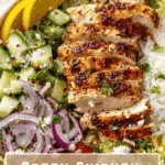 Store leftover chicken slices, rice or quinoa, veggies, and tzatziki separately in airtight containers in the fridge. This keeps everything fresh and lets you control the perfect assembly the next day.