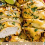 This Grilled Salsa Verde Chicken with Pepper Jack cheese is a zesty and flavorful dish that’s perfect for a quick and delicious meal. Marinated in vibrant salsa verde with cumin and lime juice, the thin-sliced chicken breasts are grilled to juicy perfection and topped with melted pepper Jack cheese for a spicy, creamy finish. Garnished with fresh cilantro and lime wedges, this recipe brings a fresh and tangy twist to classic grilled chicken.