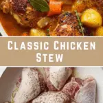 This hearty chicken stew is a comforting dish featuring tender bone-in, skin-on chicken thighs and drumsticks slow-baked with vegetables and baby potatoes in a rich, flavorful broth thickened with flour and enriched with tomato paste, Worcestershire sauce, and fresh herbs. Served with warm crusty bread, this stew offers a perfect balance of crispy chicken skin and a savory, thickened sauce.