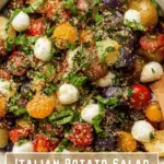 This Italian Potato Salad is a refreshing twist on the classic summer side, inspired by the flavors of a Caprese salad. Instead of mayonnaise, it features a vibrant balsamic vinegar dressing combined with garlic, honey, and olive oil, tossed with warm baby potatoes, fresh cherry tomatoes, mozzarella balls, and fragrant basil. Toasted bread crumbs add a delightful crunch, making it perfect served warm, at room temperature, or chilled.