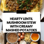 This hearty Lentil Mushroom Stew over Mashed Potatoes is a warm, comforting, and entirely vegan dish that combines savory mushroom lentil gravy with creamy mashed potatoes. Gluten-free and grain-free, it’s an easy-to-make meal that uses just 10 simple ingredients, perfect as a filling entrée or a savory side. The stew features green lentils and cremini mushrooms simmered with fresh thyme, shallots, and coconut aminos for a rich depth of flavor, served over fluffy mashed yellow potatoes made creamy with almond milk or vegetable broth.
