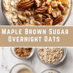 This Maple Brown Sugar Overnight Oats recipe is a comforting and nutritious breakfast option that combines creamy rolled oats soaked overnight in milk with the warm sweetness of brown sugar, maple syrup, and cinnamon. Enhanced with vanilla bean paste and topped with crunchy toasted pecans and walnuts, it offers a deliciously balanced texture and flavor, perfect for a quick, make-ahead meal.