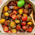 These marinated tomatoes pair beautifully with crusty bread for dipping, creamy burrata or mozzarella cheeses, and even grilled meats. They’re a fantastic fresh complement to richer sides like roasted potatoes or a hearty grain salad. This recipe’s fresh acidity and herb notes will keep your meal balanced and exciting.