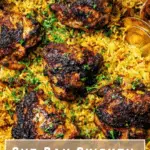 This One Pan Shawarma Chicken & Rice is a flavorful Middle Eastern dish that combines tender marinated chicken thighs with fragrant spiced rice cooked all together in one pan. Ready in 30 minutes, it features a blend of warm spices, garlic, lemon, and yogurt for a deliciously aromatic meal with minimal prep and cleanup.