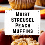 These moist and tender peach muffins are packed with juicy diced peaches and topped with a spiced cinnamon-ginger streusel. Perfect for breakfast, snacks, or dessert, and easy to make with fresh or frozen peaches.