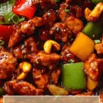This Restaurant Style Dragon Chicken is a spicy and flavorful Indo-Chinese dish featuring tender boneless chicken thigh strips marinated and shallow fried to golden perfection, then stir-fried with crunchy vegetables, cashew nuts, and a tangy, spicy sauce. Perfect for a quick and delicious family meal with vibrant colors and bold tastes.