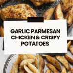This Sheet Pan Garlic Parmesan Chicken & Potatoes recipe is an effortless, flavorful one-pan meal perfect for busy weeknights. Tender chicken breasts are seasoned with a savory mix of garlic powder, Italian seasoning, and parmesan cheese, then roasted alongside thinly sliced potatoes until golden and crispy. The meal is packed with rich, comforting flavors and minimal cleanup, making dinner both delicious and convenient.