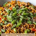 This Slow Cooker Beef Ramen recipe elevates classic ramen noodles with hearty ground beef, vibrant vegetables, and a rich, sweet-savory sauce. Perfect for a comforting meal, it uses the slow cooker to meld flavors effortlessly, making it an ideal dish to satisfy hearty appetites with minimal active cooking time.