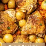 Tender and flavorful slow cooker chicken thighs cooked with baby potatoes, carrots, and a savory herb-infused gravy. This comforting one-pot meal is easy to prepare, combining a quick skillet sear and slow cooking to deliver juicy chicken and perfectly cooked vegetables, finished with a delicious thickened gravy and an optional crispy skin broil.