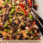 This vibrant Spicy Sesame Slaw with Mushrooms & Edamame is a fresh, crunchy salad bursting with Asian-inspired flavors. Featuring shredded cabbage, crisp edamame, colorful bell peppers, and sautéed mushrooms tossed in a creamy, spicy sesame dressing, it offers a perfect balance of heat, tang, and nuttiness. This dish makes a delicious and nutritious side or light main, ideal for those seeking a flavorful vegetable-forward meal packed with protein and texture.