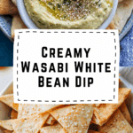 This Spicy White Bean Dip with avocado and wasabi is creamy, zesty, and full of bold flavor. Paired with homemade sesame pita chips, it’s the perfect light yet flavorful snack or appetizer for parties or everyday dipping.