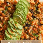 Once out of the oven, drizzle the spicy mayo and unagi sauce across the top. Garnish generously with fresh avocado slices, green onions, and toasted sesame seeds. The contrast of warm baked filling with cool creamy avocado and the kick of sauces creates sushi magic in casserole form.