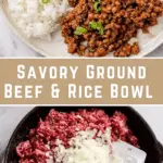 Divide the cooked rice evenly among four bowls, creating a fluffy bed for the flavorful beef to rest on. Spoon the saucy ground beef generously over the rice layers, ensuring every bite is packed with that sweet and spicy goodness.