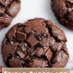 Delight in these rich and fudgy Triple Chocolate Cookies, combining semi-sweet chips, dark chocolate chunks, and cocoa powder for a decadent treat. Perfectly soft in the center with slightly crisp edges, these cookies are enhanced with a hint of vanilla and an optional touch of flaky sea salt for a balanced chocolate experience.