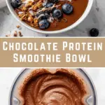 This delicious vegan Chocolate Protein Smoothie Bowl is a nutritious and creamy breakfast or snack option packed with plant-based protein, fiber, and antioxidants. Made with frozen bananas, vegan protein powder, cocoa, and nutrient-rich superfood toppings like chia seeds and fresh berries, it provides a satisfying and energizing start to your day in just 5 minutes.